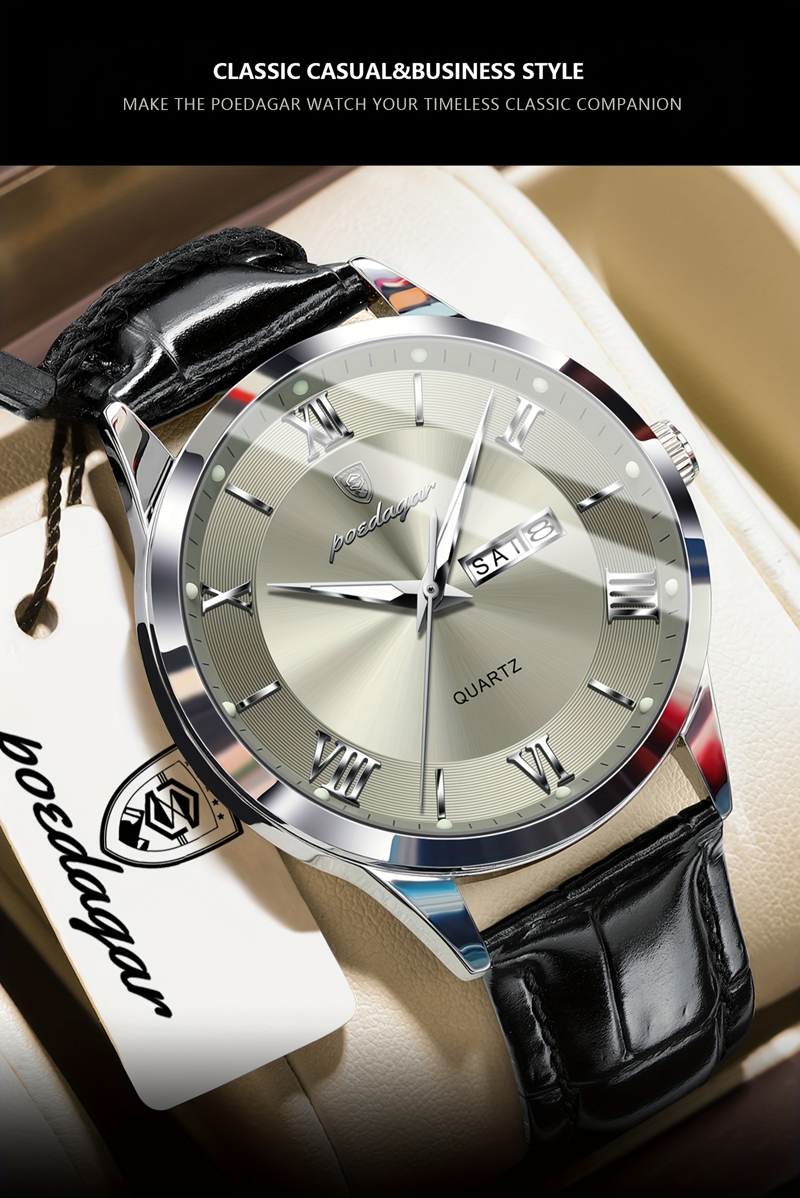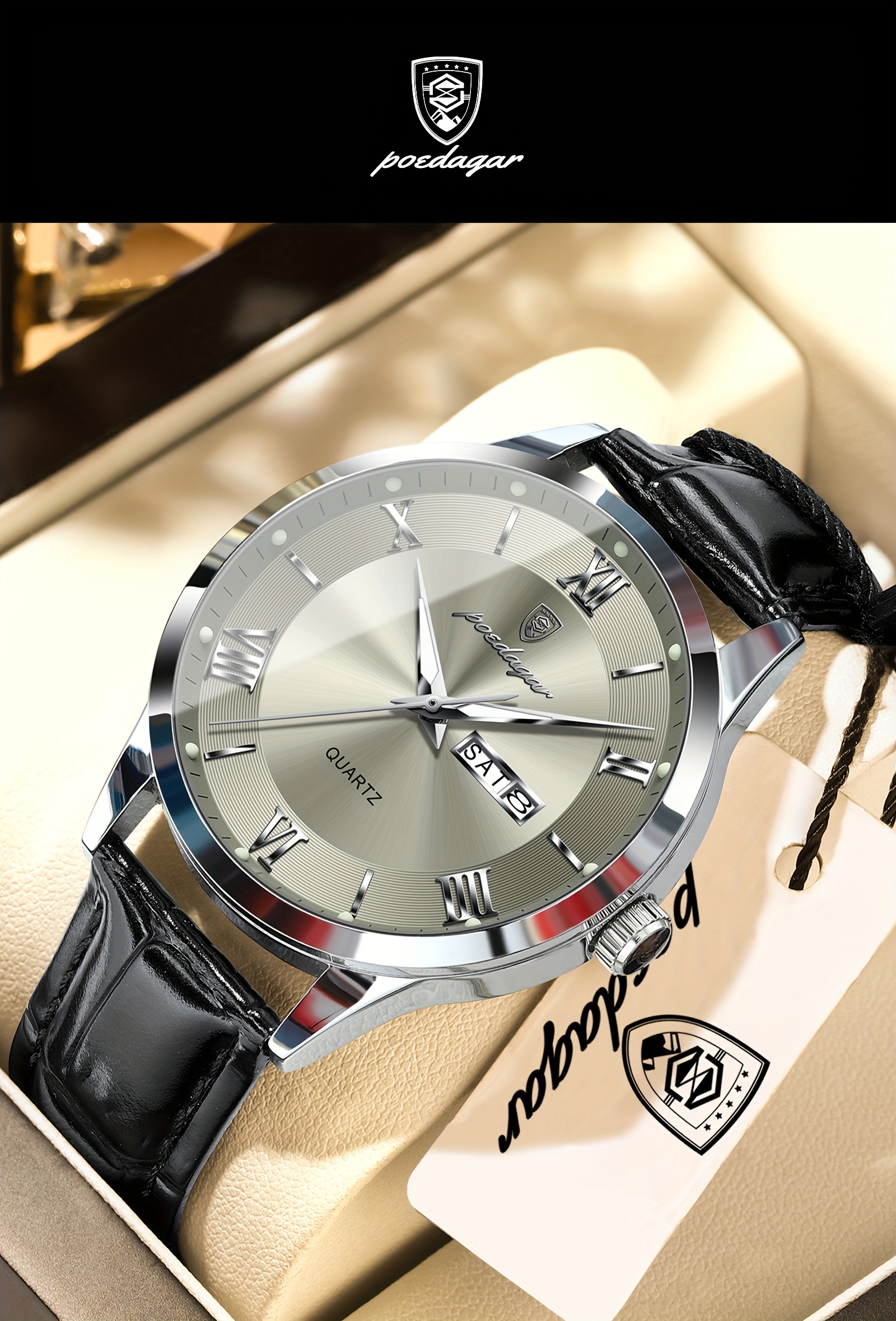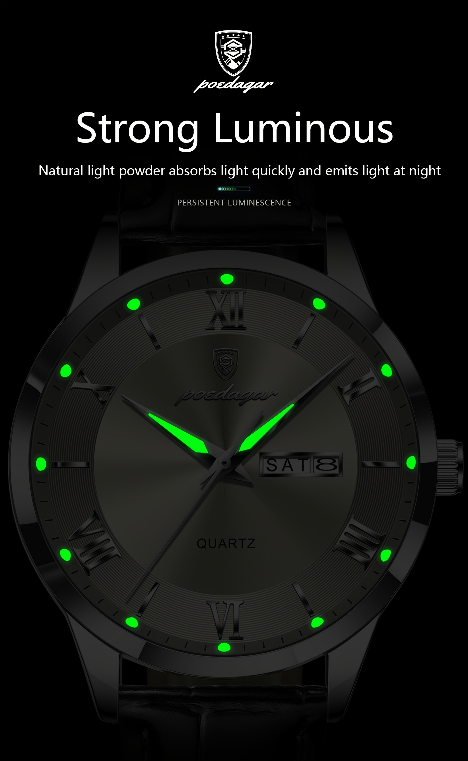 Orologio da Uomo POEDAGAR Elegante – Cinturino in Pelle, Impermeabile, Calendario e Quadrante Luminoso