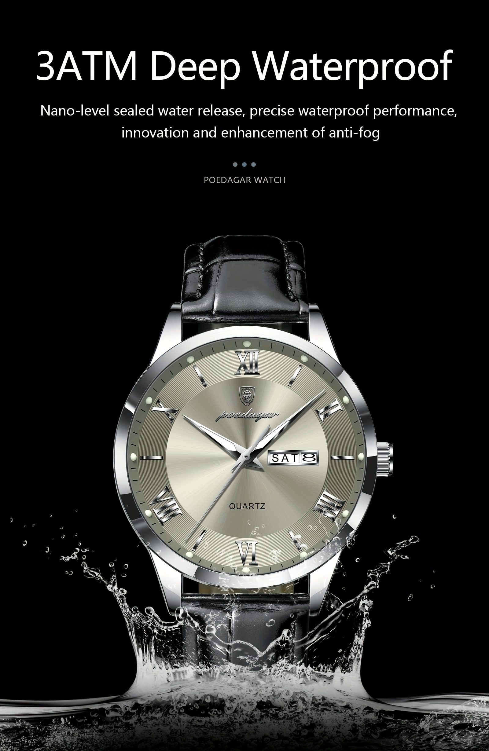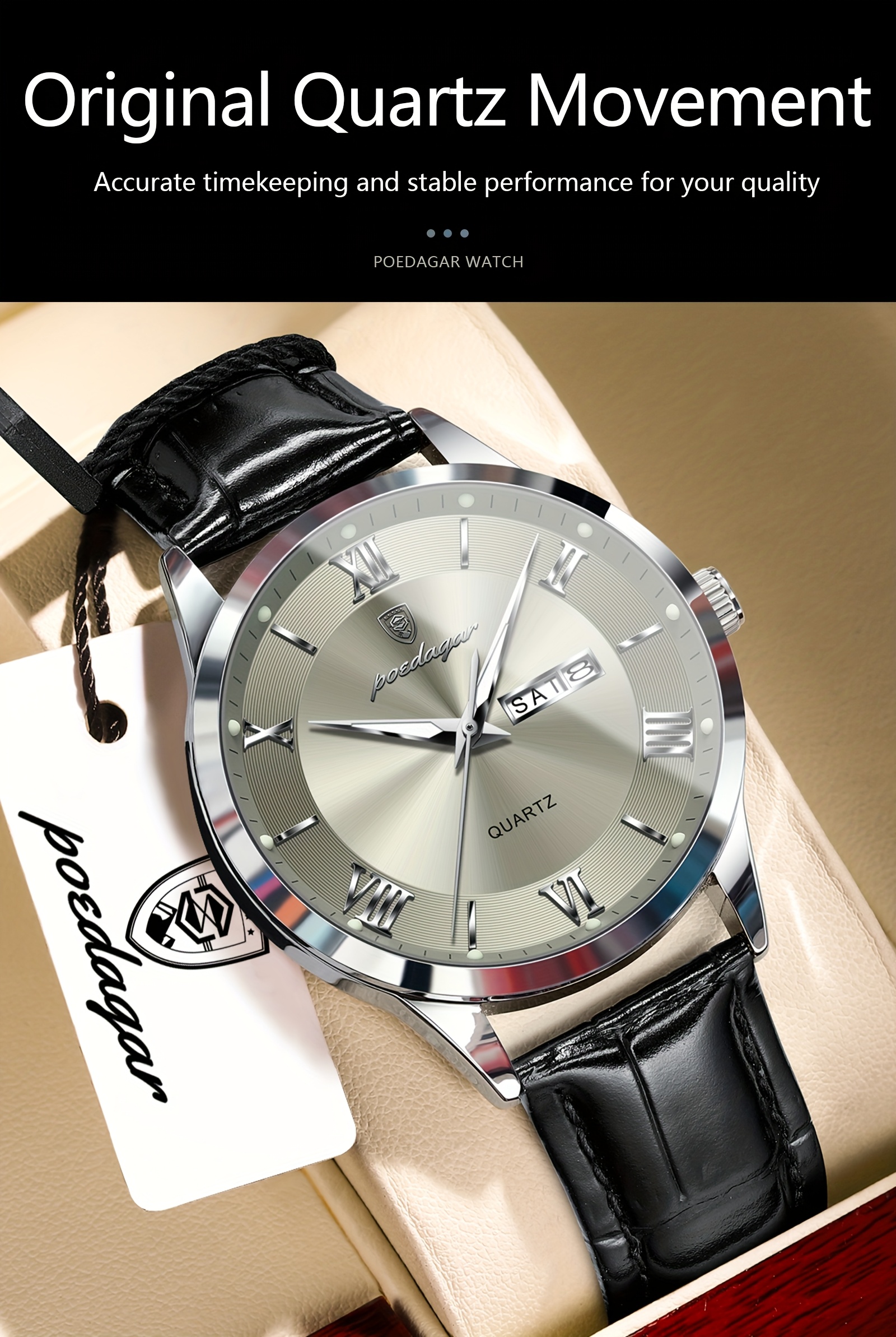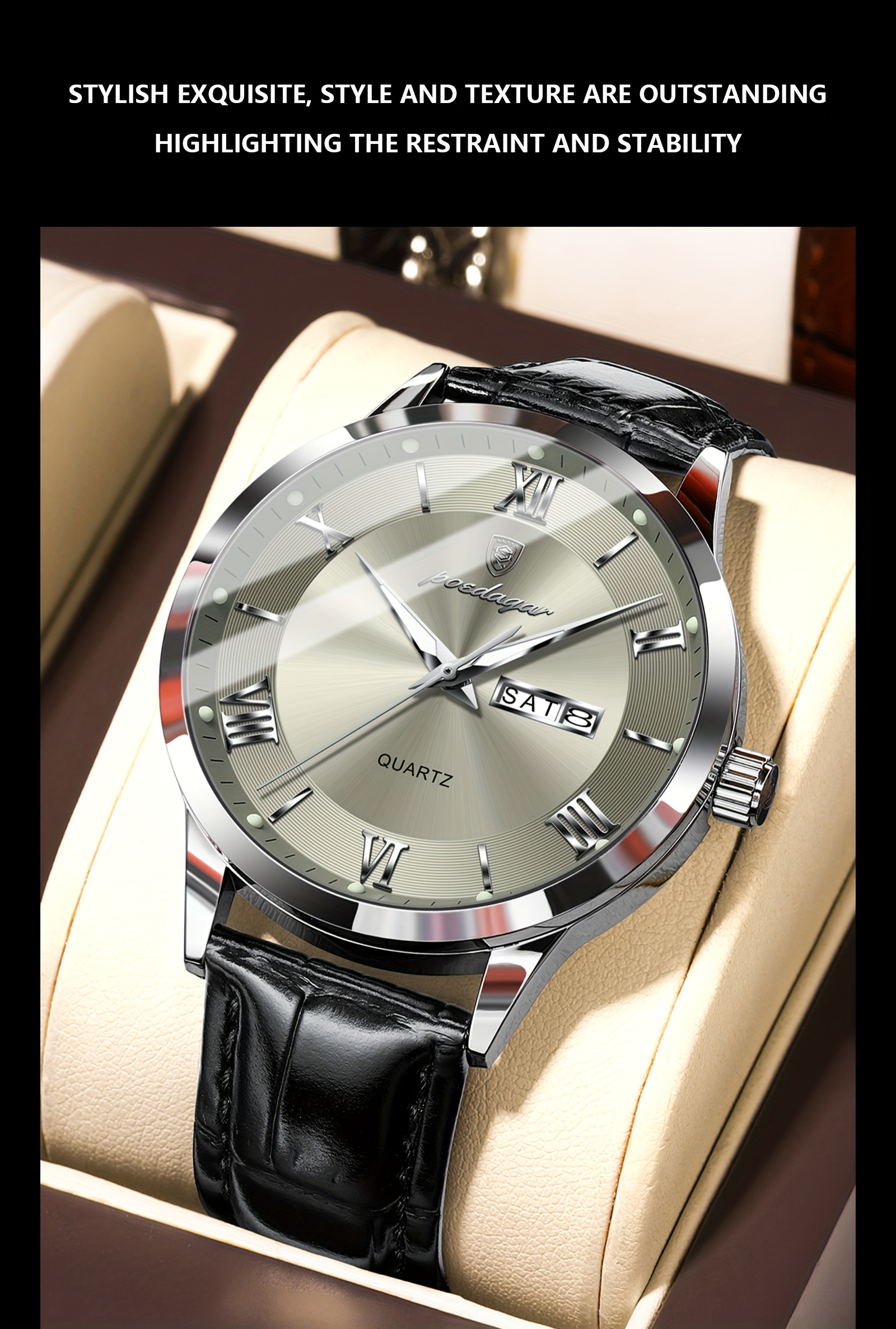 Orologio da Uomo POEDAGAR Elegante – Cinturino in Pelle, Impermeabile, Calendario e Quadrante Luminoso