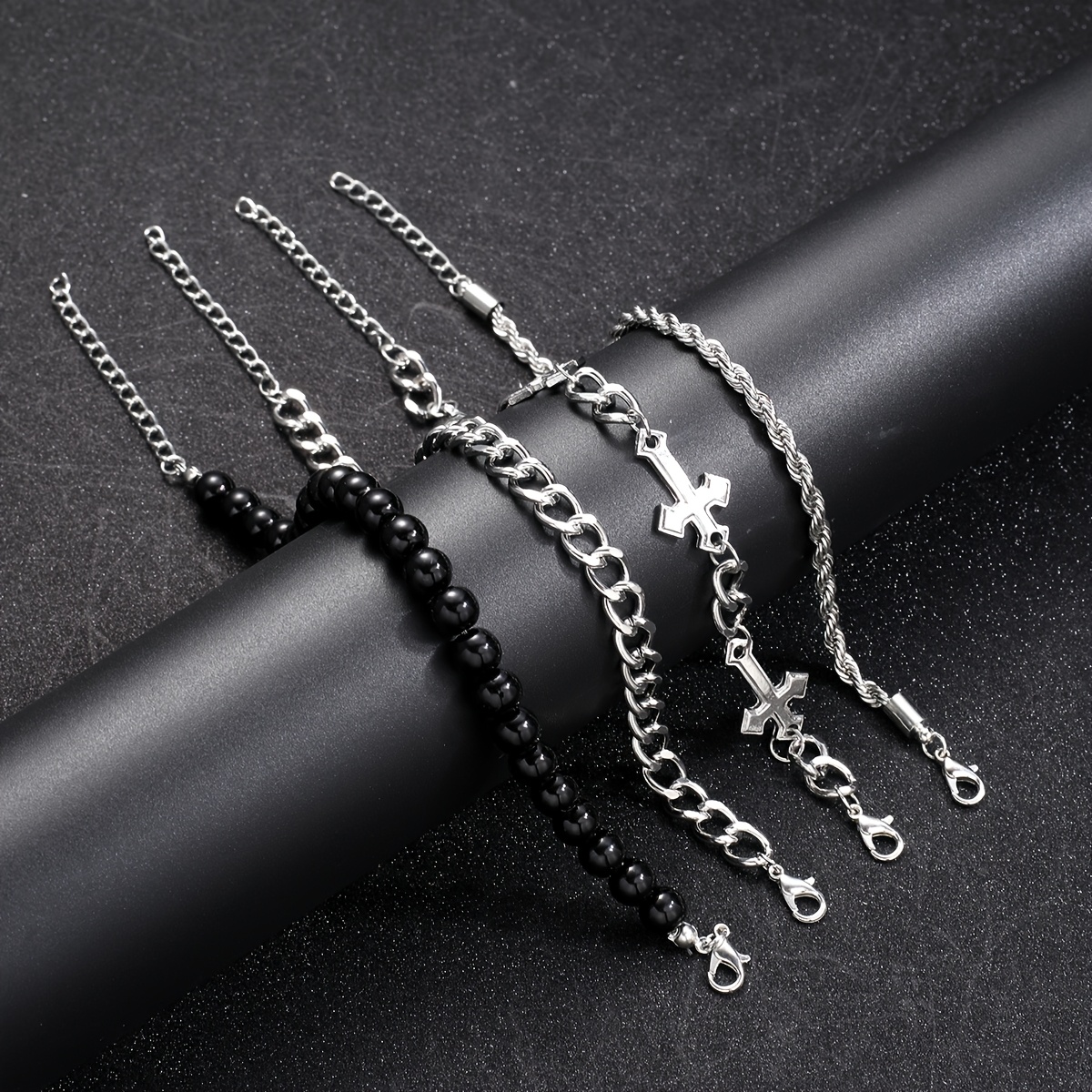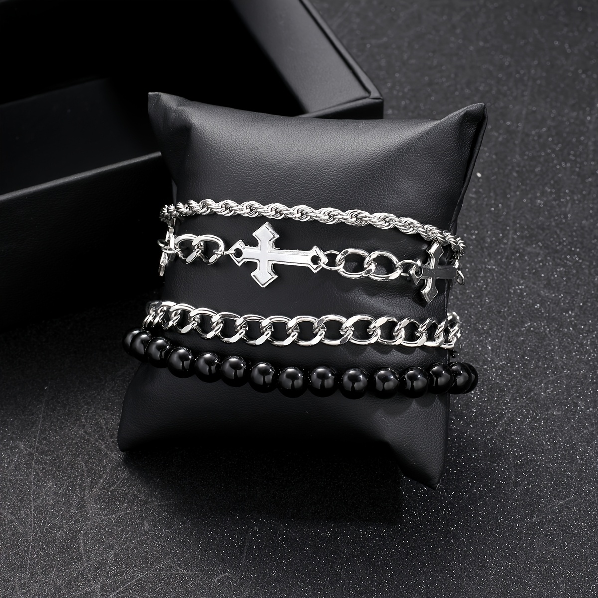 4pcs Men's Jewelry Set, Minimalist Sports Cross Beaded Bracelet Set, Gift for Boyfriend, Dating, Party, or Daily Wear, No Box, Party Jewelry, Holiday Accessory, Trendy Men's Fashion, Minimalist Design, Highquality Beads, Fash