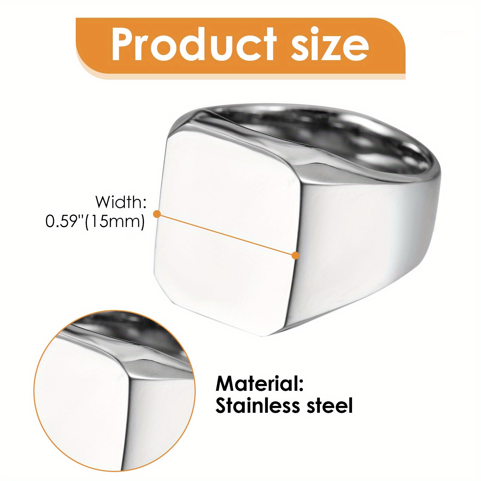 JewelryWe High Polished Stainless Steel Engagement Wedding Band Mens Signet Ring, Men Engagement Ring, Anniversary Gift, Engagement Ring for Men, Minimalist Jewelry, Sleek Design, Highquality Finish, Hypoallergenic Material,