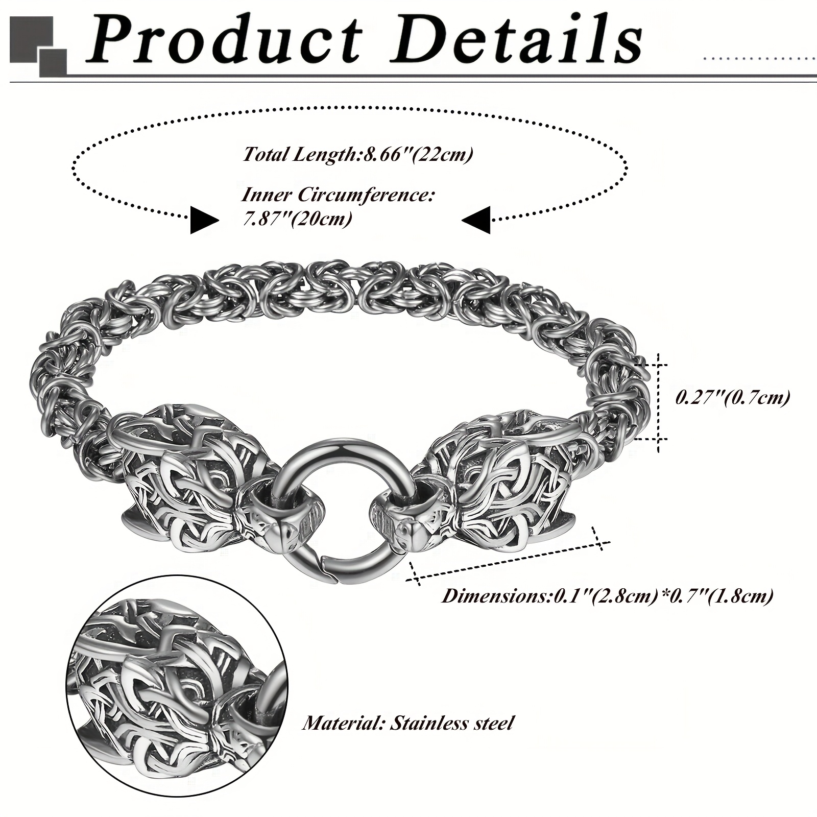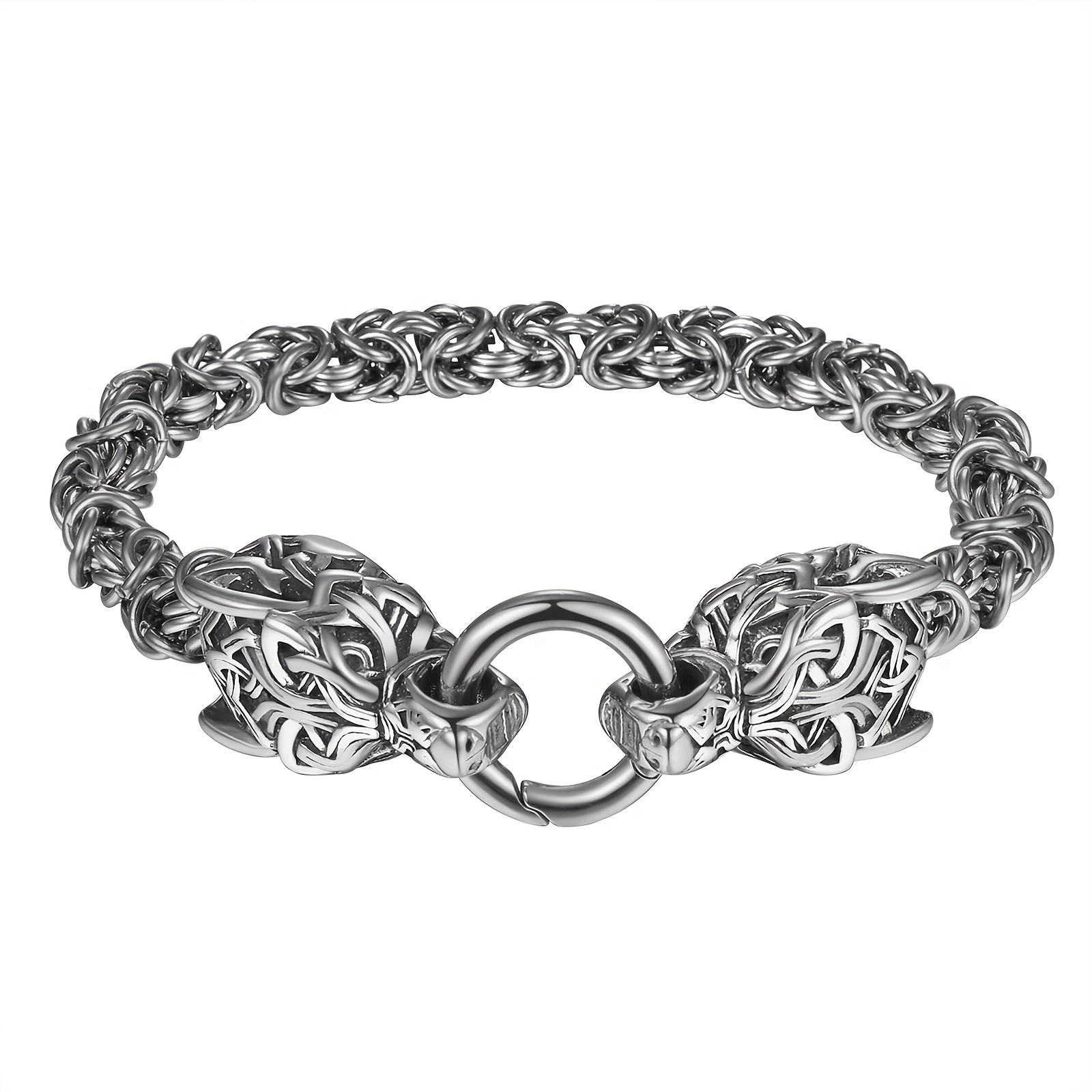 Nordic wolf Viking Men's bracelet: Byzantine chain amulet Irish Celtic pattern wolf head - retro hip-hop gothic Norwegian Byzantine bracelet